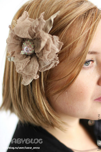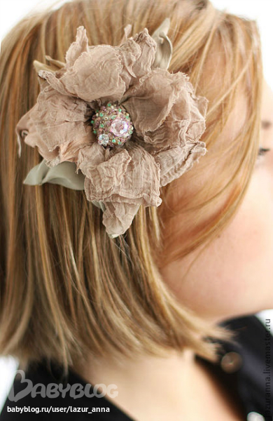 Текстильная брошь-заколка в смешанной технике