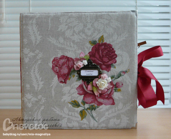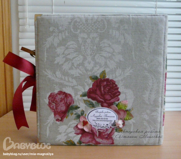 Формат листов 25*25 см, переплет по МК Леси Ромашиной, состоит из 6 листов (это 7 разворотов или 14 страниц), вмещает 25 фото разных форматов, на последней развороте 2 места для фото 10*15 см и карман для фото 10*15 см. Обложка из жесткого кардстока, отделка иск. лен на мягком подкладе. На обложке не стала делать много украшения, сама ткань с рисунком все достаточно хорошо обыгрывает, на мой взгляд