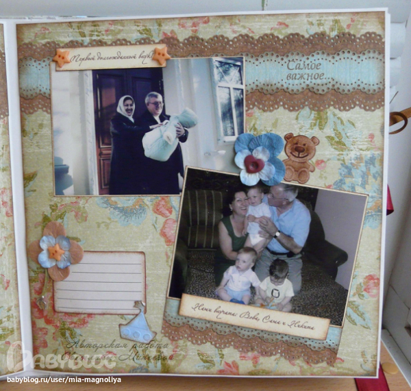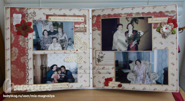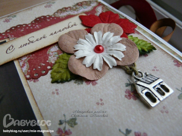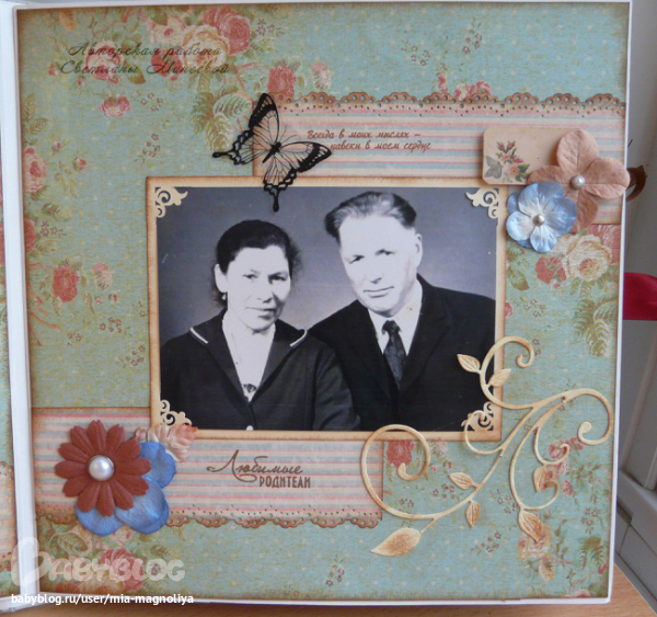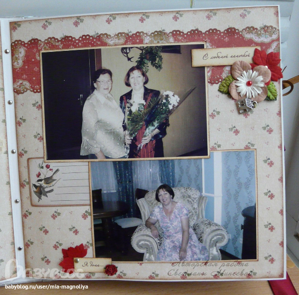 СкрапбукингАльбом выполнен на заказ как подарок маме на юбилей. Заказали ее дочери, прислали отобранные фотографии, я их распечатала, как мне надо (размер и насыщенность, она снижена, тк стиль альбоа близкий к стилю винтаж)и уже с ними работала. Так же заказчица прислала подписи для фото
