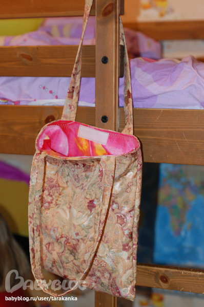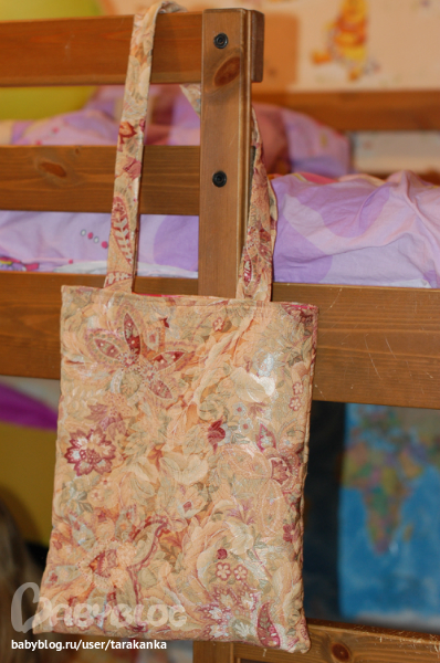 Арише исолнилось 10 лет и шила на машинке она впервые. Конечно, я говорила что и как шить, но все строчки она выполнила сама. Единственное, что лямки выворачивала ее мама, отгладила лямки я, а приметала лямки между сумкой и подкладом бабушка.
