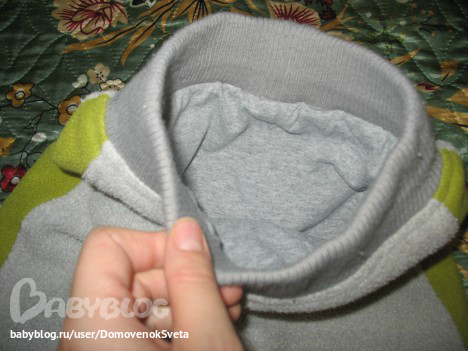 С капюшончиком )) По краю вшита резинка, чтобы во внутрь не задувало.