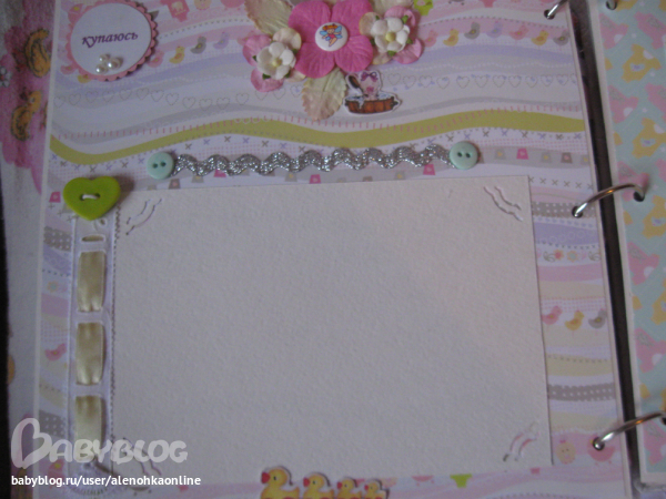 на этой страничке конверт для локонов, он к верху поднимается, и под ним еще место для трех фото.