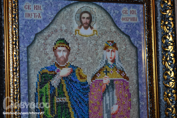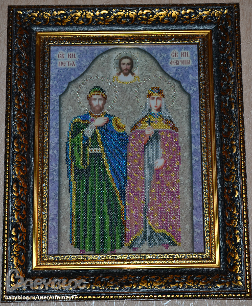 Получала удовольствие от работы )) Вышивка бисером "Святые Петр и Февронья" от "Вышиваем бисером", на счет оформления у меня двоякое чувство, даже хотела позвонить на следующий день и попросить сделать однотонный багет ( н-р золотой), но оставила так. А как на ваш взгляд?