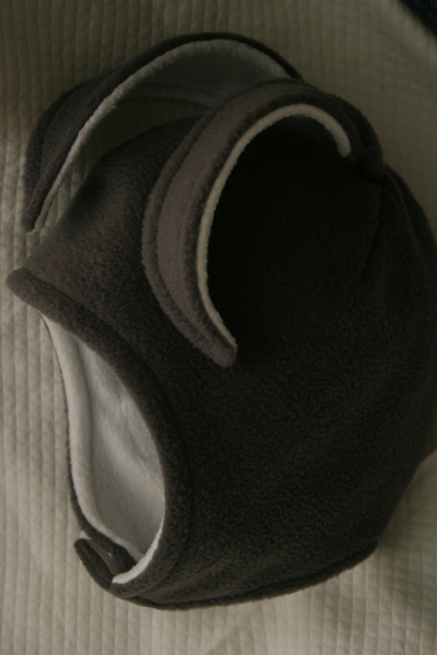 Два слоя флиса (серый плотный, белый тонкий), защита от ветра на ушках, липучка - застежка.
