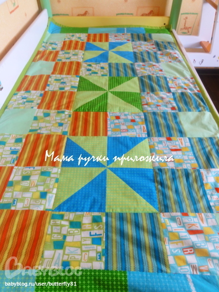 Ткань можно подобрать нашу, специальные лапки тоже думаю для начала не обязательно покупать. Как делала: во-первых определиться с размерами покрывала и размерами квадратов, из которых оно собственно шьеться. Для удобства я делаю эскиз. Вертушки  я делала по этому МК http://vechernie-posidelki.blogspot.ru/p/blog-page_28.html Дальше все квадраты сшиваю в полосы, а затем полосы между собой. Делаю так называемый бутерброд: складываю лицо, начинку (синтепон), задник вместе, скалываю по периметру, когда простегивала вертушки, вокруг тоже скалывала, чтоб во время шитья ничего не съехало, т. к. покрывало большое, можно прошить обметочными стежками. Простегиваю, можно как угодно, по квадратам, полосами и т.д. Затем окантовываю. Я делала все просто: вырезала полосы длиной равные сторонам покрывала + 2см на подгибку, шириной 8 см. Получается 4 полоски. На первом фото видно, как пришито. Вот и все! Я конечно не профи в этом деле. Сама только учусь. Да, делай изнанку чуть больше лица, стежка может забрать лишние см., что останется, обрежешь потом. Надеюсь, понятно объяснила)))