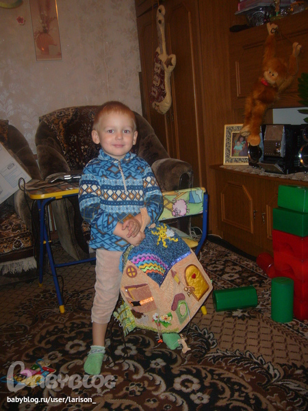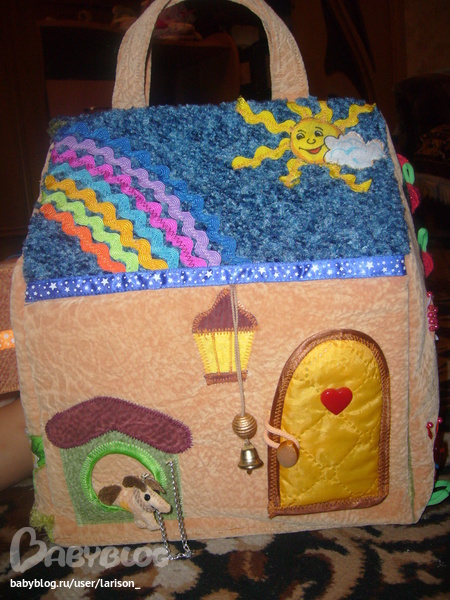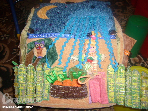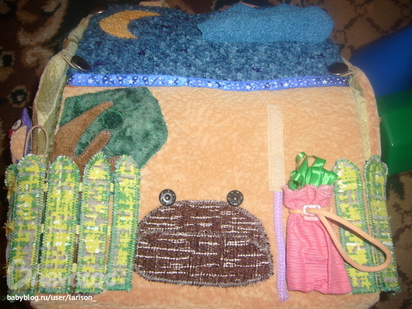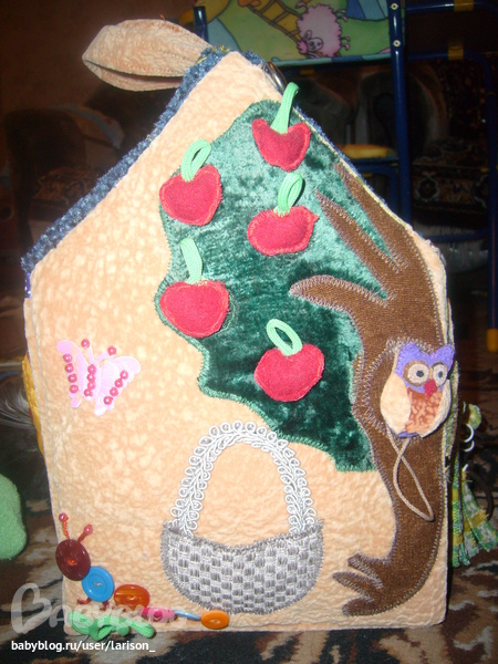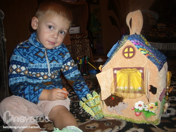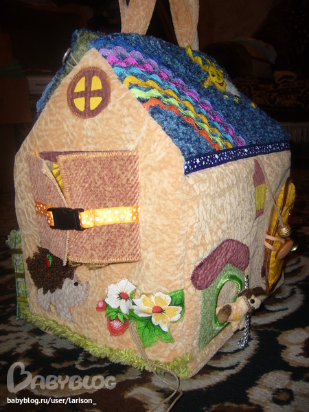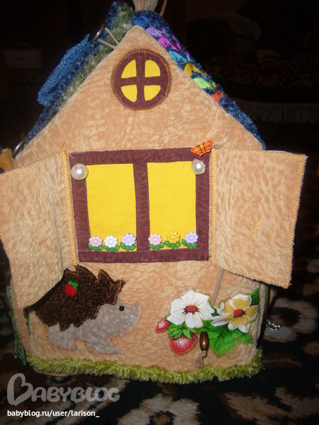 Девочки,меня просто распирает от гордости.Наконец-то я это сделала.Идеи собирала давно,что-то позаимствовала из разных развивающих книжек и домиков,что-то сама выдумала.Шила домик две недели.Ребенок доволен.Вот что получилось,Зацените.