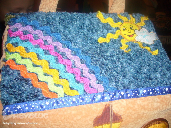На одной стороне крыши поместилось солнышко и радуга.Можно изучать понятия день-ночь,цвета и счет.