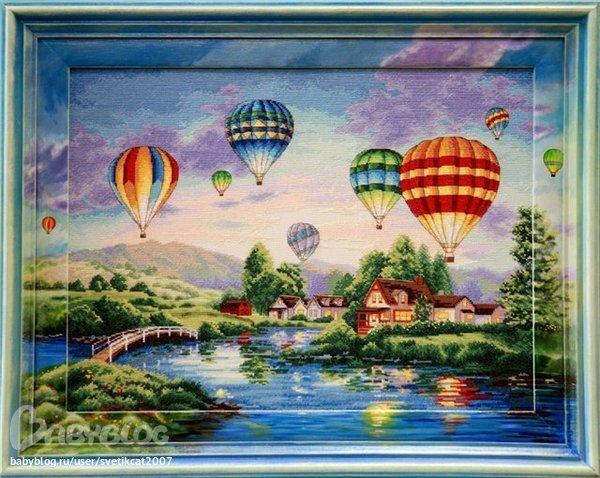 Аааааа мои шары....Я теперь болею шарами, еще одна работа лежит от панны и еще заказала от другого производителя (выложу позже), дорисовка супер аж 9 шариков стало...но у нас тоже такого не делают... Вы знаете я тоже их вскрыла, вышила 20 крестиков в левом верхнем углу и что то меня так напрягло в 6 нитей то, думаю фу нить рвётся к концу и отложила (не помню на сколько). А потом мне как то муж кинул: ты, мол, сначала шары вышей.... И понеслось!!! За 7 месяцев ночей можно сказать с младенцем я их отшила, так легко потом пошло, схем как у Дим лучше нету!!! Так что удачи вам!!!
