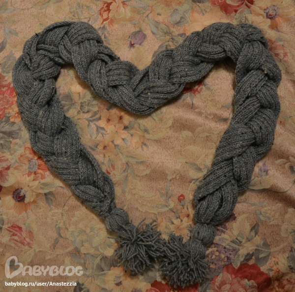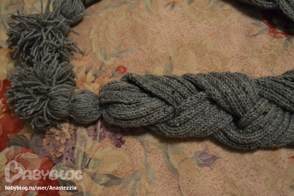 Вязала 3 полоски по полтора метра, после заплетения длина 120 см))Фотографировала без вспышки, чтоб видны были детали))конечно можно было поизвращаться с узором,но для меня и это подвиг)))