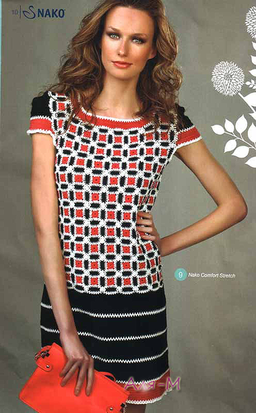 платье симпотичное, но я бы сделала его приталеным, может по бокам по пол квадратика связала бы, или крючок меньшего диаметра взяла в районе талии, ну это мои мысли =)