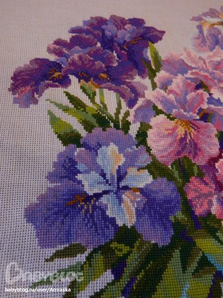Вот я и закончила свои любимые ирисы! начала их еще в апреле, довышивала в начале октября,с промежуточными перерывами на другие, мелкие работы, до презентабельного вида довела своих красавцев только сейчас) Останется лишь оформить, при появлении благоприятной финансовой возможности))