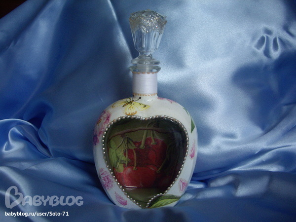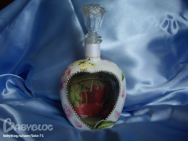 Мммм... Вобще то это обратный декупаж и бутылка внутри действительно пустая, а вишенки просвечиваются через прозрачное окошко. :)