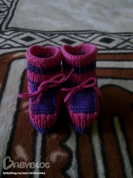 На фото пинетки для дочки подруги. А эти для сыночка вязала, когда ему 3 месяца было.