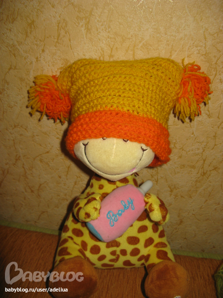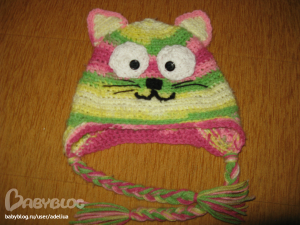самая первая, толком не походили пряжа акрил и крючок 5, вышла в дырочку и по холоду не одеть и когда тепло-жарко)) одевала под низ флисовую шапку
