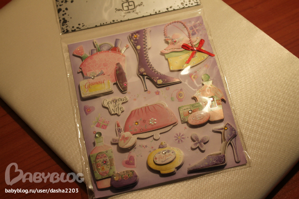 Ну и приятный сюрприз-бласлетик обвязаный и замечательные наклеечки-уже думаю где бы их использовать))