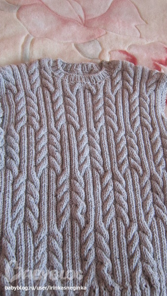 Не распускайте свитер. Можно выйти из положения. Например, безрукавка. Обвяжите, как горловину или манжеты на рукавах те места, куда пришивается рукав. Если и этот вариант не устраивает, тогда можно рукава связать полосатыми. Докупите белых или голубых ниток( они хорошо с серыми сочетаться будут) по толщине одинаковых с серыми и перевяжите рукава. Рукава перевязать гораздо проще, чем свитер весь. Кстати, на косы много ниток уходит. Я вязала аналогичный свитер, рукава у меня были связаны просто резинкой 2:2, без кос. Тоже хорошо получилось. Попробуйте, может у вас и ниток хватит, если полностью рукав резинкой связать. На крайний вариант, манжет рукава можно начать вязать серыми нитками более тонкими, которые вы докупили, а остальное оставшимися от свитера. Удачи вам!