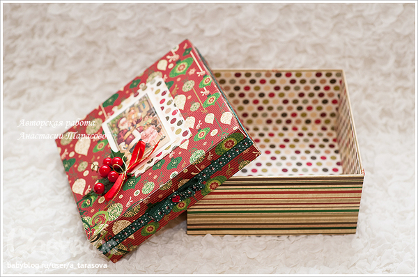 Коробочка для подарка 20-20 см. С Сантой:)