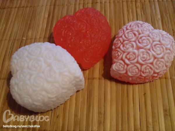 Видела пост тут на ББ, не помню у кого. Там подсмотрела идею. Такое сердечко я мужу дарила на день влюблённых,14 февраля. Вот теперь ещё и мыло буду такое делать))