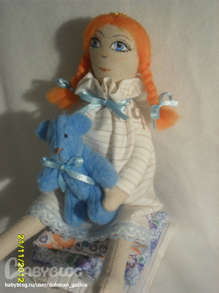 может))))))эта девочка сшилась для того чтоб можно было попробовать волосы сделать из шерсти ( опят то нужен небольшой) и чтоб лицо нарисовать)))а потом я подумала что её обязательно надо делать))))