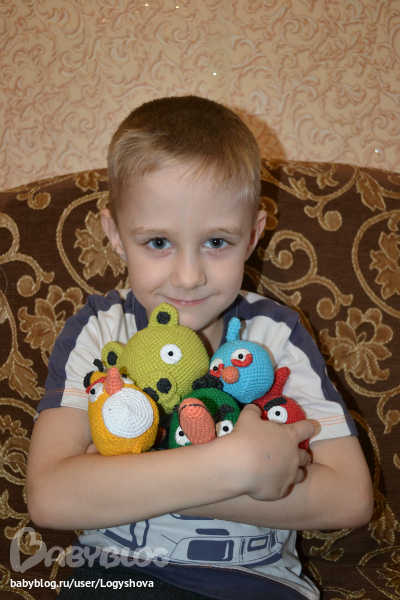Сказал, что завтра в садик их возьмёт! Я предложила взять только одну, но он решительно настроен и отступать не собирается, "всех нужно брать"!!!! Да, сказал, что голубых птичек нужно ещё две! По правилам игры они в полёте расстраиваются