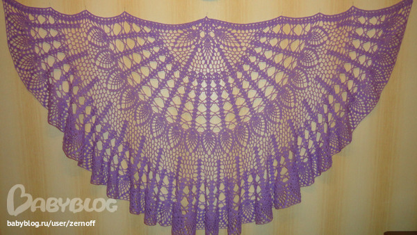 Вот здесь она ееще не довязана (нет ряда ананасов), зато хорошо передан цвет и видно размер.