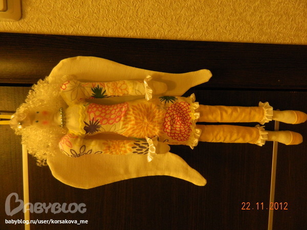 Мой первый тильдо-ангел уже готов выпорхнуть из-под иголки... Но мне почему-то не хочется его отпускать, кажется незаконченным,.. Подскажите мне, пожалуйста, как его можно еще приукрасить... А может, это вообще не тильда, а ерунда...