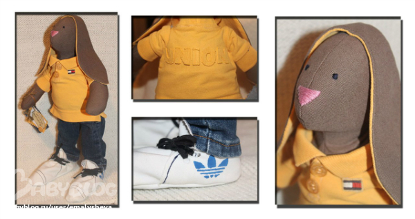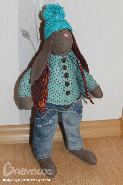 Зайка 45 см. Одежда и тело - 100% хлопок. Наполнитель - холлофайбер. 1600 руб
