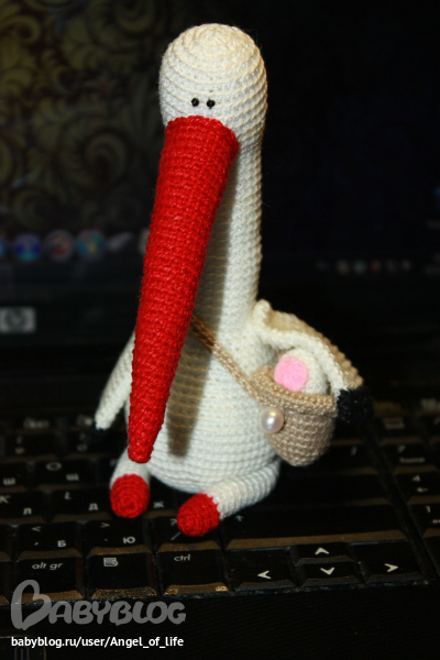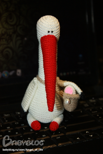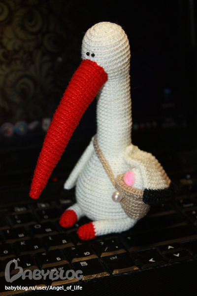 Настя,очень красивая игрушка!!!!А Вы не могли бы подсказать ссылочку или схемку дать.Пожалуйста!Просто дело в том,что у моего брата с супругой нет детей,что-то никак не получается уже несколько лет((((Вот хочется им такого аиста подарить-как талисман-может всё ещё будет хорошо!)))
