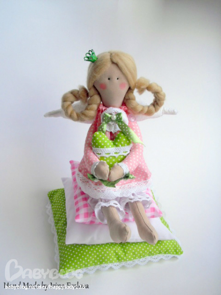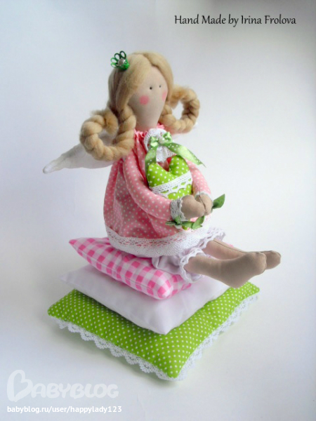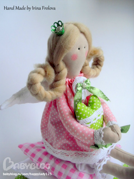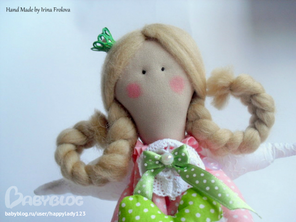Использовала хлопок, габардин, хлопковое кружево, атласные ленты; волосы - шерсть для валяния; наполнитель - холлофайбер!!!