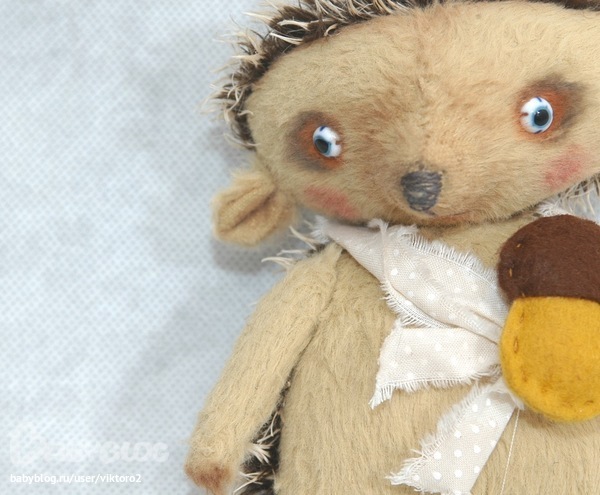 У ШУРки вискозная шкурка с примесью ежикового мохера, 4 шплинта (голова на двойном), наполнитель холлофайбер, стеклянный глазки от "Шерстяной лампочки". Маленькая брошка грибок сшита из фетра.