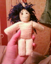 чудик номер раз - тогда я училась вязать спицами и попробовала вот такую куколку связать - страшненькая ведьмочка получилась)))