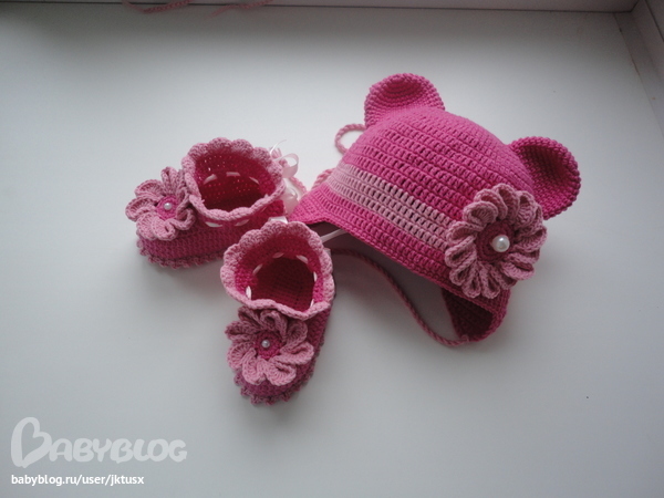 Обалденный комплектик супер,а можно пожалуйста схемку цветочка на шапочке и пинеток?????/