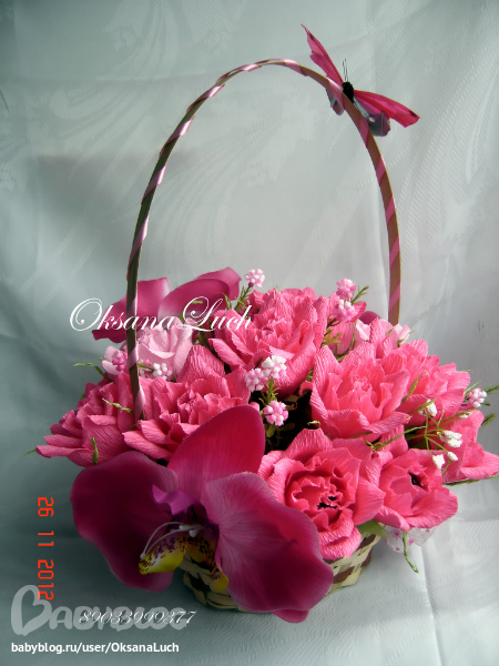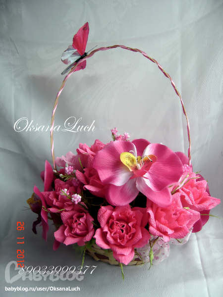 Ты опять на себя наговариваешь!!! Розы бесподобные! И корзиночка хорошая.