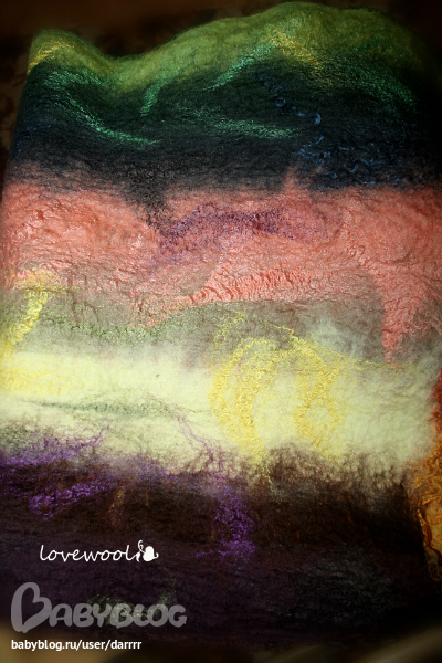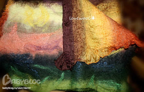 валяный из шерсти на индийском шелке. усыпан шелковыми волокнами, рамией.