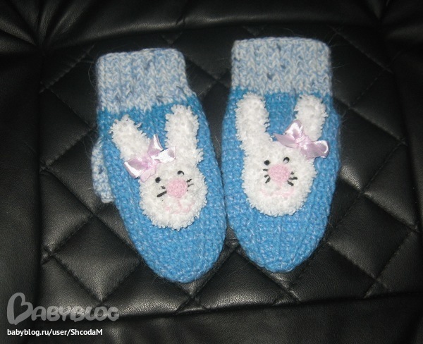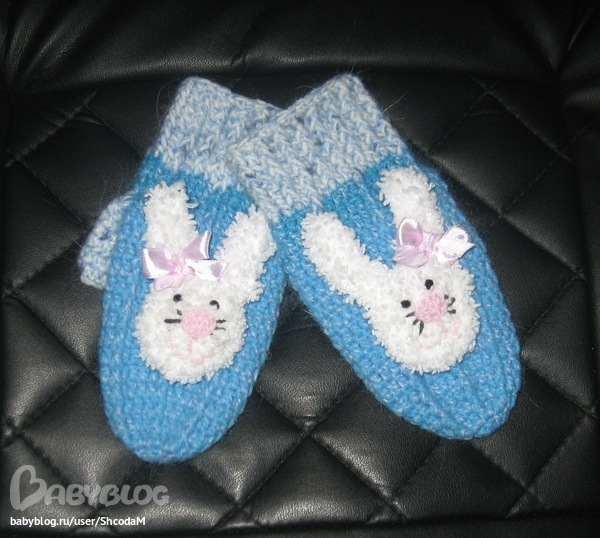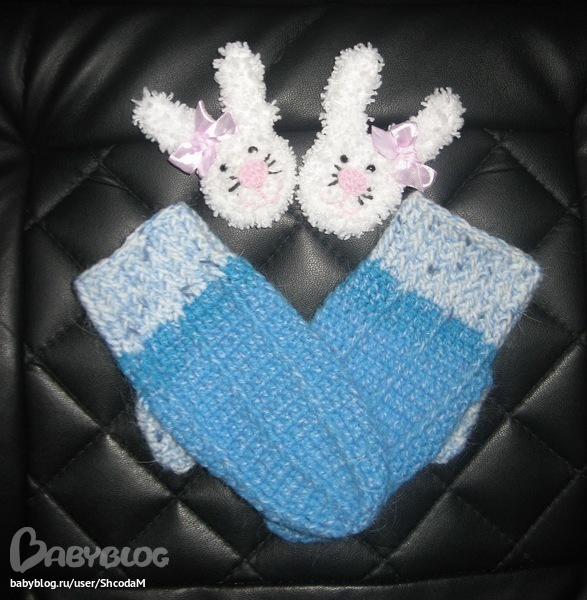 чудесные руоквички. с зайками супер. можно один совет? купите тонкую резинку нить и прошейте - иначе спадать будут