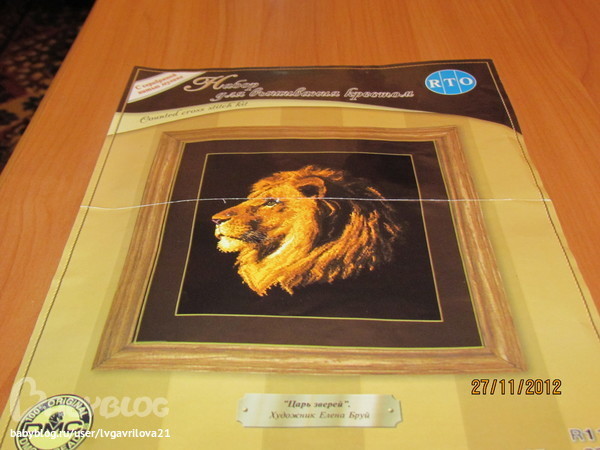 4. "Царь зверей" - RTO. Эту работу я начала вышивать, но поняла, что вышивка на черной канве с черно-белой схемой это не мое. Поэтому отдам не законченную работу.