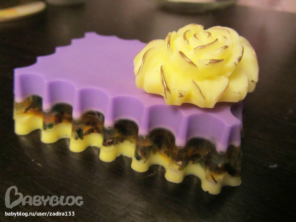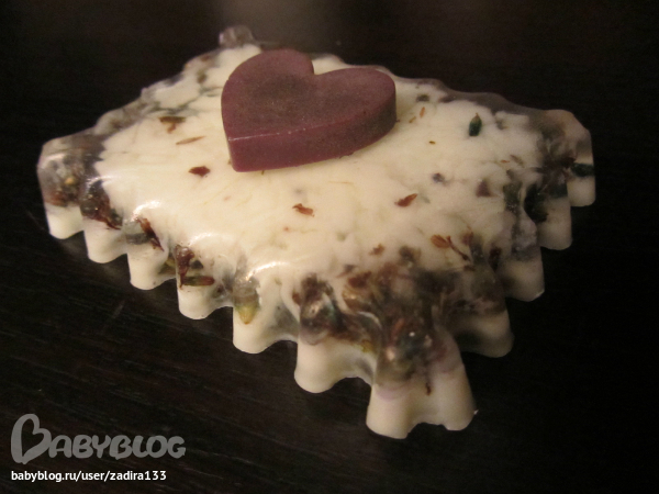 Мыло с добавлением масла зарадышей пшеницы и сухих цветочков лаванды, Украшение шоколадное сердечко.