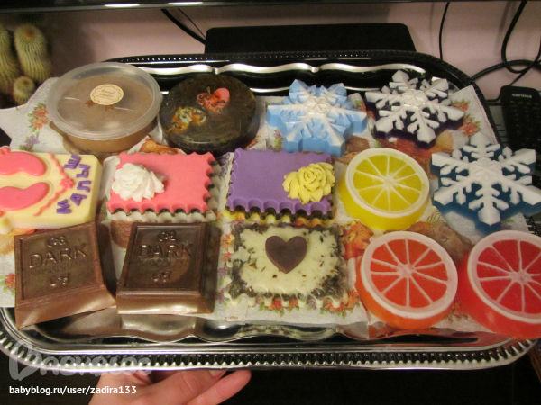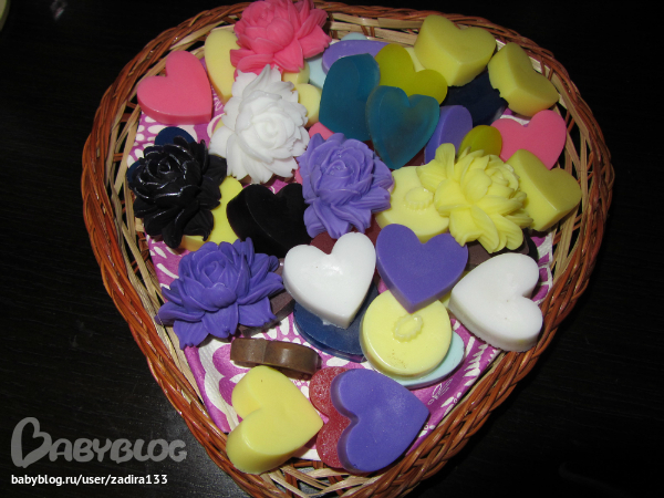 Мы с мужем его маме и сестре всегда дарим все одинаковое, а то поругаются))) Но я бы дарила в одном стиле,похожие мыльца. Но можно собрать красивый набор.что бы каждый нашел себе там по мыльцу.