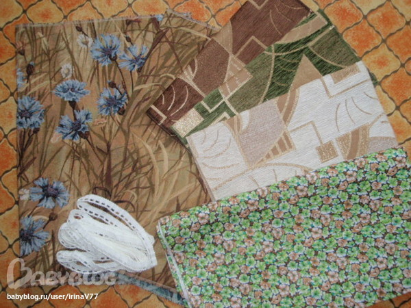 Ткань гобелен два отрезка 65х45, шинилл три квадратных лоскута 35х35 и ситец 115х90