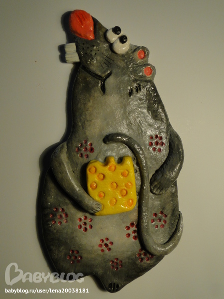 2. Жадный мышонок из соленого теста и заготовка ключницы для декупажа