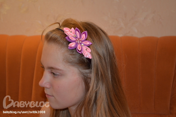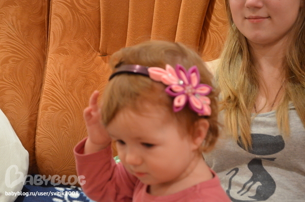 А вот и сама Полина, примеряет ободок, а еще ей Настя помогает))