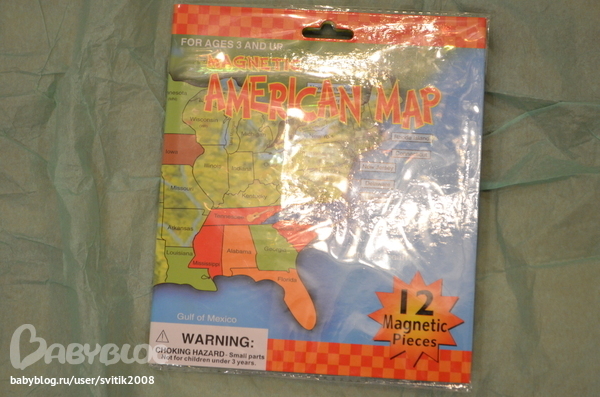 2. Это Пашин подарочек: тут книжка- пазл, т.е. там карта Америки со всеми штатами, они на магнитах, надо каждому магниту найти место) Паша уже разобрался, а штат Пенсильвания нашел первым, оттуда наша феечка)) А еще внутри были монетки из Америки, Паше в коллекцию, он доволен как слон!