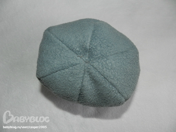 тут девочки недавно ссылку на МК на осинке давали)) по нему)) сначала по размеру вырезала прямоугольник, сложила чтоб было 6 частей, обрисовала кончик утюга для клинышков, вырезала их)) сшивала обметочным швом)) а потом пришила к шапе))