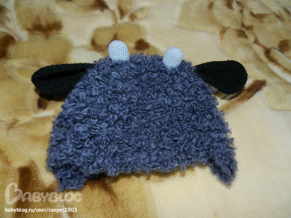 Остались ниточки от первого барашка)) Связан в две нити Астраган+Бриллиант)) утеплен флисом)) для зимы наверно нормально будет))