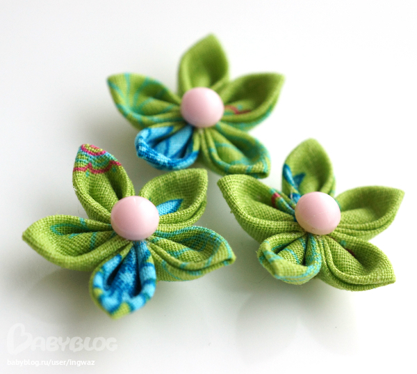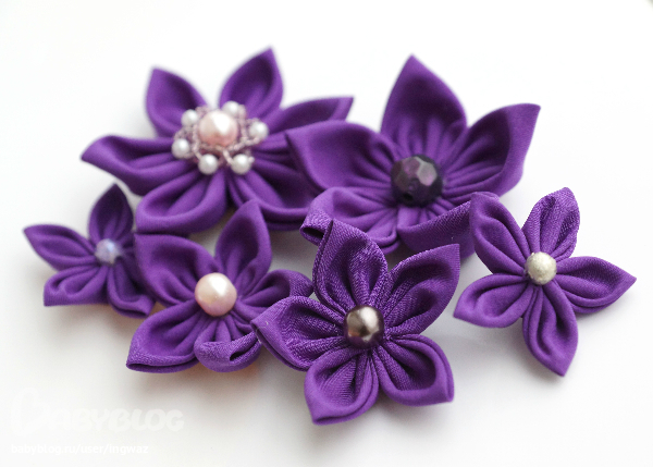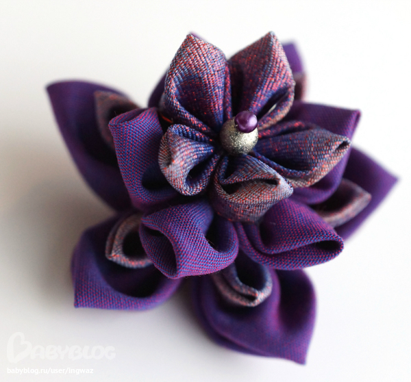 очень красиво! А подскажите пожалуйста как вы делали цветочек из органзы? Очень у него красивые лепесточки получились. Заранее спасибо!