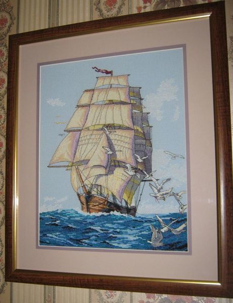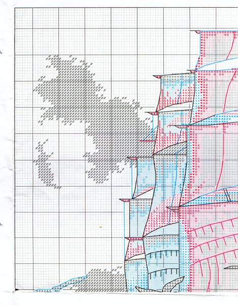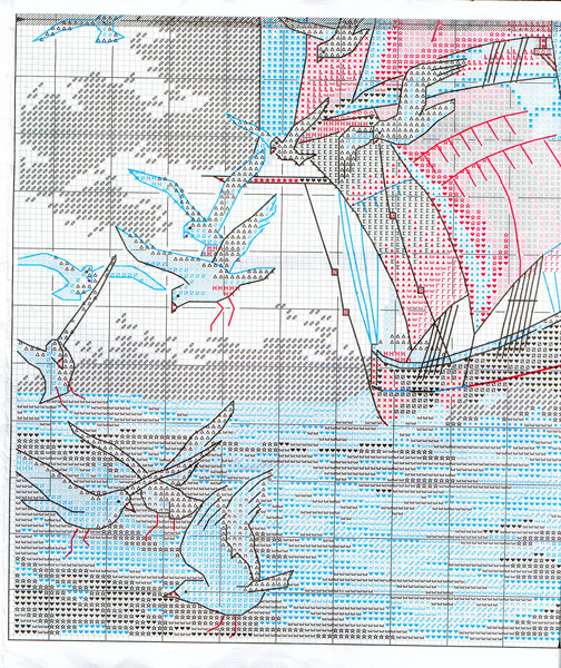 Добрый день! Я сейчас вышиваю такой набор. Фон- не вышивается. Канва - светло-голубая. Облака и море вышиваются полукрестиком с разным количеством нитей, порой нужно брать нити разного цвета и вышивать одновременно. У меня набор, возможно, я смогу отсканировать в понедельник на работе схему и ключ и вышлю Вам. Мне только нужен Ваш электронный адрес. Если возникнут вопросы - спрашивайте! Я обязательно отвечу!