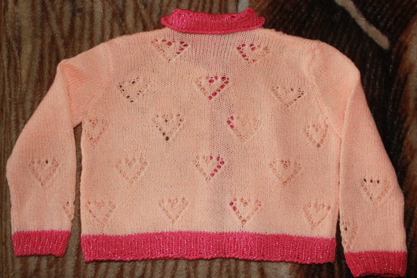 Это для маленькой племяшки, из остатков пряжи от платья)) На вязание кофточки вдохновила меня вот эта работа. Надеюсь автор не обидится, за то , что в наглую слямзила общую идею кофточки:)