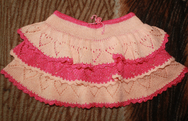 И это тоже для племяшки из остатков пряжи , название уже и не помню, кофточка еще не совсем закончена)идея юбочки найдена здесь же на ББ:)
