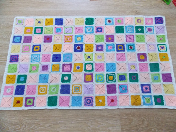 спасибо! я тоже думала, что соединять будет сложно, но в итоге это оказалось проще, чем вязать сами квадраты)))
