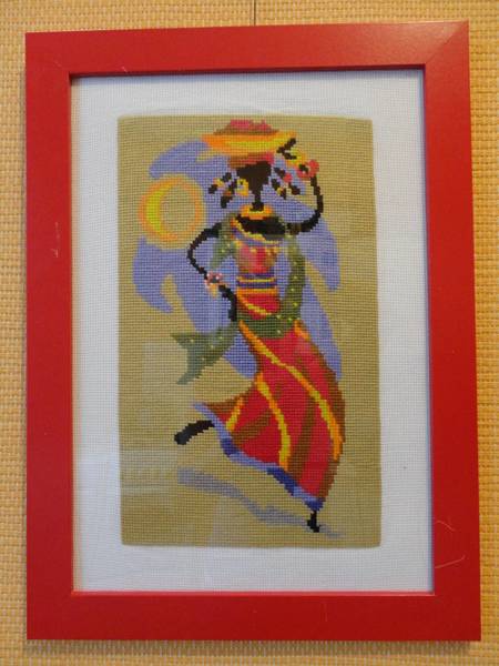 У самой вышитый африканец в черно-кричневых-серых тонах дома лежит, до мастерской никак не дойду.